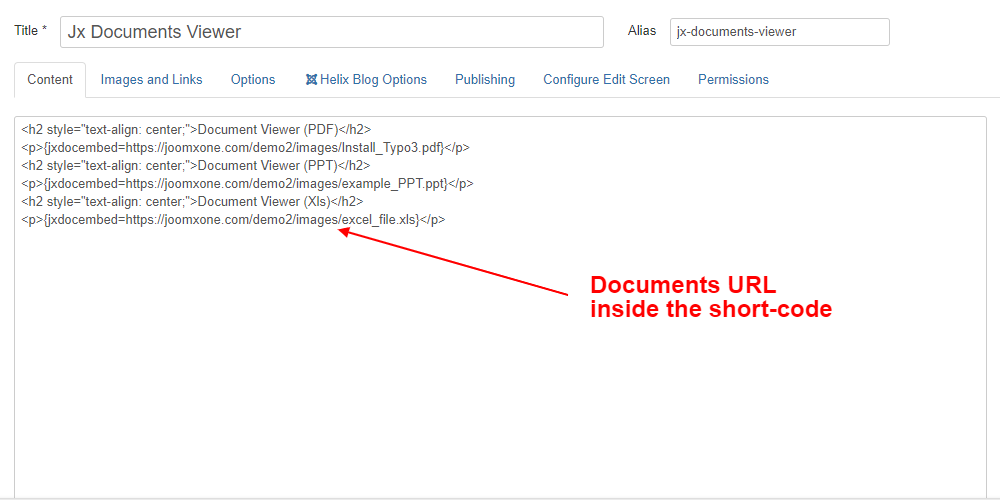 - You can upload DOCX, XLs, PPT PDF file at your Joomla images directory and use their full path at short-code.