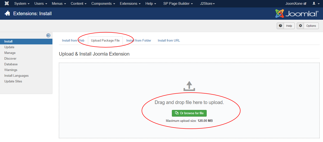 - Select Upload Package File tab. Now drag and drop the extension zip file. OR you can browse the zip file and upload. That's it