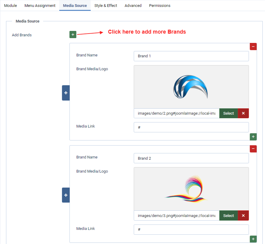 - Remember, you need to upload those logos to you Joomla media/images directory, so that you can select them from your module back end.